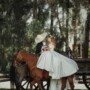 Confeccionado en razo de alta calidad, este vestido destaca por su falda amplia estilo princesa y una elegante cauda que fluye con cada paso.